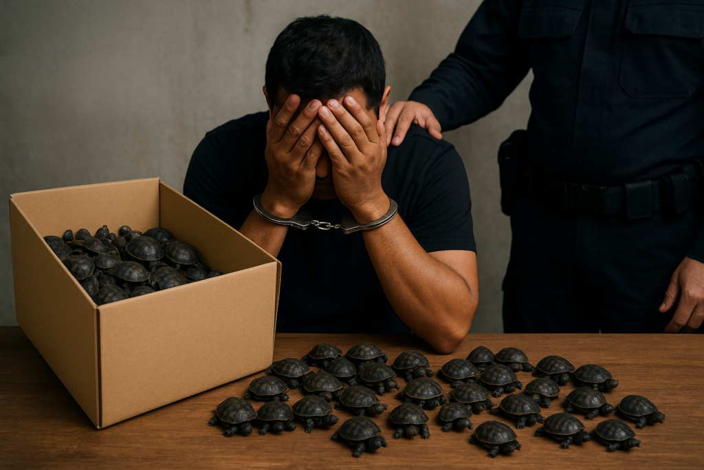 A apreensão foi realizada por agentes da Polícia Rodoviária Federal (PRF) e da Delegacia de Meio Ambiente (DPMA) que, ao abrirem o compartimento de bagagens de um ônibus vindo de Natal (RN), perceberam um forte odor proveniente de três malas. No interior, encontraram centenas de jabutis em condições de confinamento extremo, sem ventilação, alimento ou água. O agora denunciado admitiu que receberia R$ 1,5 mil para levar os animais em direção a uma feira ilegal de animais silvestres em Duque de Caxias, na Baixada Fluminense.